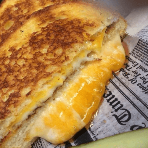 Grilled triple stacked on white with American, Cheddar, Swiss, provolone and mozzarella