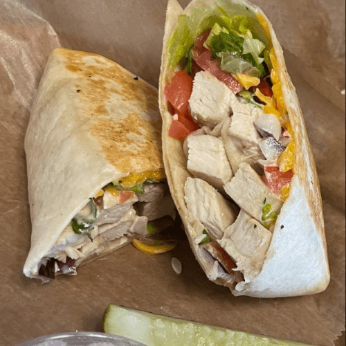 Grilled chicken, Cheddar, chipotle mayo, lettuce, tomato, red onion